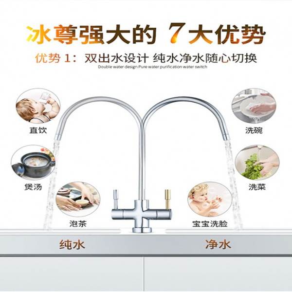 3、若需长时间使用净化水,如:洗衣服或洗澡时,可在使用过程中适当打开直通水龙头,及时排除杂质,减少滤芯堵塞机率。